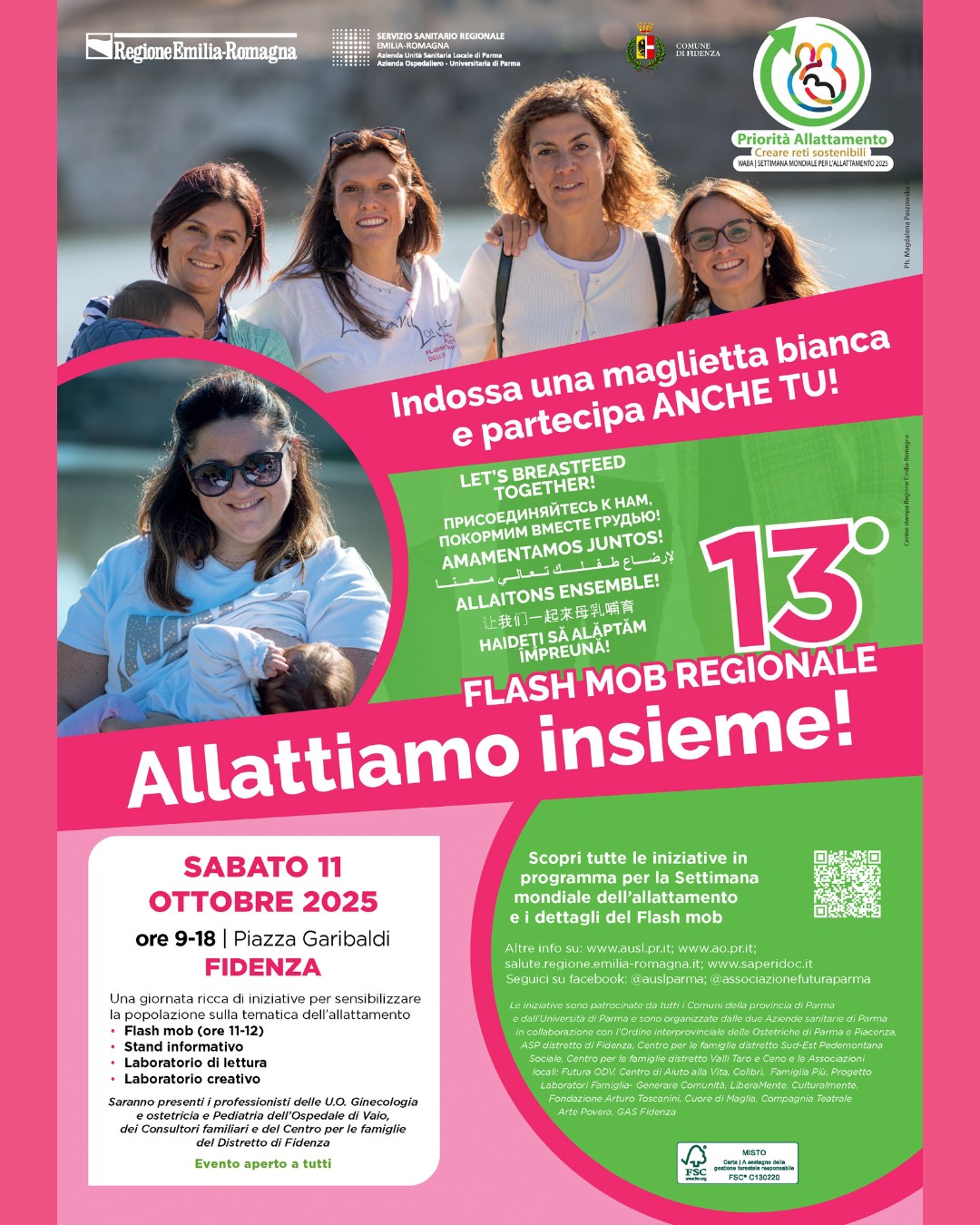 Ma il mese autunnale, come da tradizione, è anche quello della Settimana Mondiale dell’Allattamento (SAM) e il Centro per le Famiglie ha organizzato alcuni appuntamenti per promuovere quel gesto naturale così importante che nutre, protegge e crea un legame profondo tra la mamma e il bambino. Il 7 ottobre dalle 17.30 alle 19.30 nella Sala delle Colonne in Corte Agresti a Traversetolo (Via F.lli Cantini, 8) le coppie in attesa e con bambini fino a 3 anni potranno dialogare e confrontarsi sui primi passi in quella nuova avventura chiamata genitorialità con un’ostetrica, una pediatra e gli operatori del CpF. Due giorni dopo, il 9 ottobre dalle 10 alle 12, la Sala civica di Lesignano de’ Bagni (P.zza San Michele) si animerà con il tradizionale flashmob “Allattiamo Insieme”, aperto a tutta la cittadinanza. Un’iniziativa giunta alla 13esima edizione, promossa da Regione e Ausl, che si svolgerà in contemporanea in tutta l’Emilia-Romagna. A coloro che volessero partecipare, si chiede solamente di indossare una maglietta bianca. Per l’occasione sarà presente uno stand informativo con i professionisti dei consultori, della pediatria di comunità e del CpF. Ai partecipanti verranno inoltre regalati dei gadget realizzati dal laboratorio dell’Associazione Arti & Mestieri rivolto a persone con disabilità.