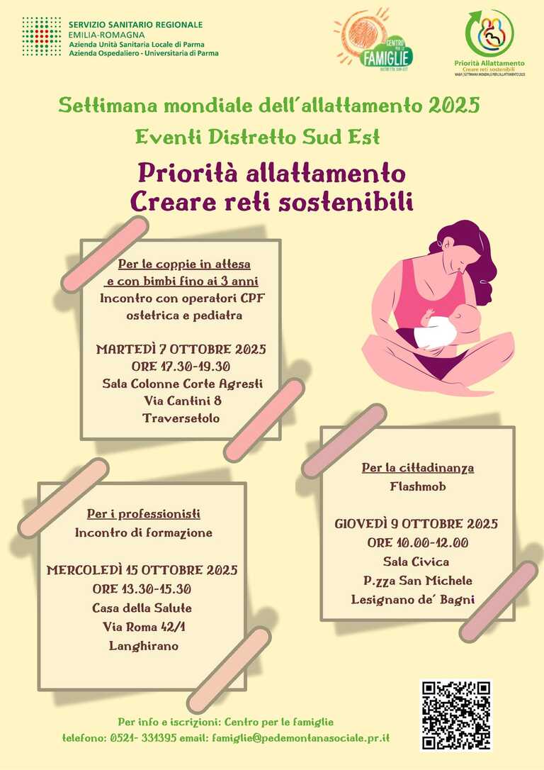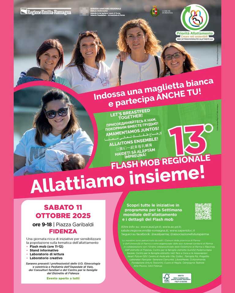 Ma il mese autunnale, come da tradizione, è anche quello della Settimana Mondiale dell’Allattamento (SAM) e il Centro per le Famiglie ha organizzato alcuni appuntamenti per promuovere quel gesto naturale così importante che nutre, protegge e crea un legame profondo tra la mamma e il bambino. Il 7 ottobre dalle 17.30 alle 19.30 nella Sala delle Colonne in Corte Agresti a Traversetolo (Via F.lli Cantini, 8) le coppie in attesa e con bambini fino a 3 anni potranno dialogare e confrontarsi sui primi passi in quella nuova avventura chiamata genitorialità con un’ostetrica, una pediatra e gli operatori del CpF. Due giorni dopo, il 9 ottobre dalle 10 alle 12, la Sala civica di Lesignano de’ Bagni (P.zza San Michele) si animerà con il tradizionale flashmob “Allattiamo Insieme”, aperto a tutta la cittadinanza. Un’iniziativa giunta alla 13esima edizione, promossa da Regione e Ausl, che si svolgerà in contemporanea in tutta l’Emilia-Romagna.  A coloro che volessero partecipare, si chiede solamente di indossare una maglietta bianca. Per l’occasione sarà presente uno stand informativo con i professionisti dei consultori, della pediatria di comunità e del CpF. Ai partecipanti verranno inoltre regalati dei gadget realizzati dal laboratorio dell’Associazione Arti & Mestieri rivolto a persone con disabilità.