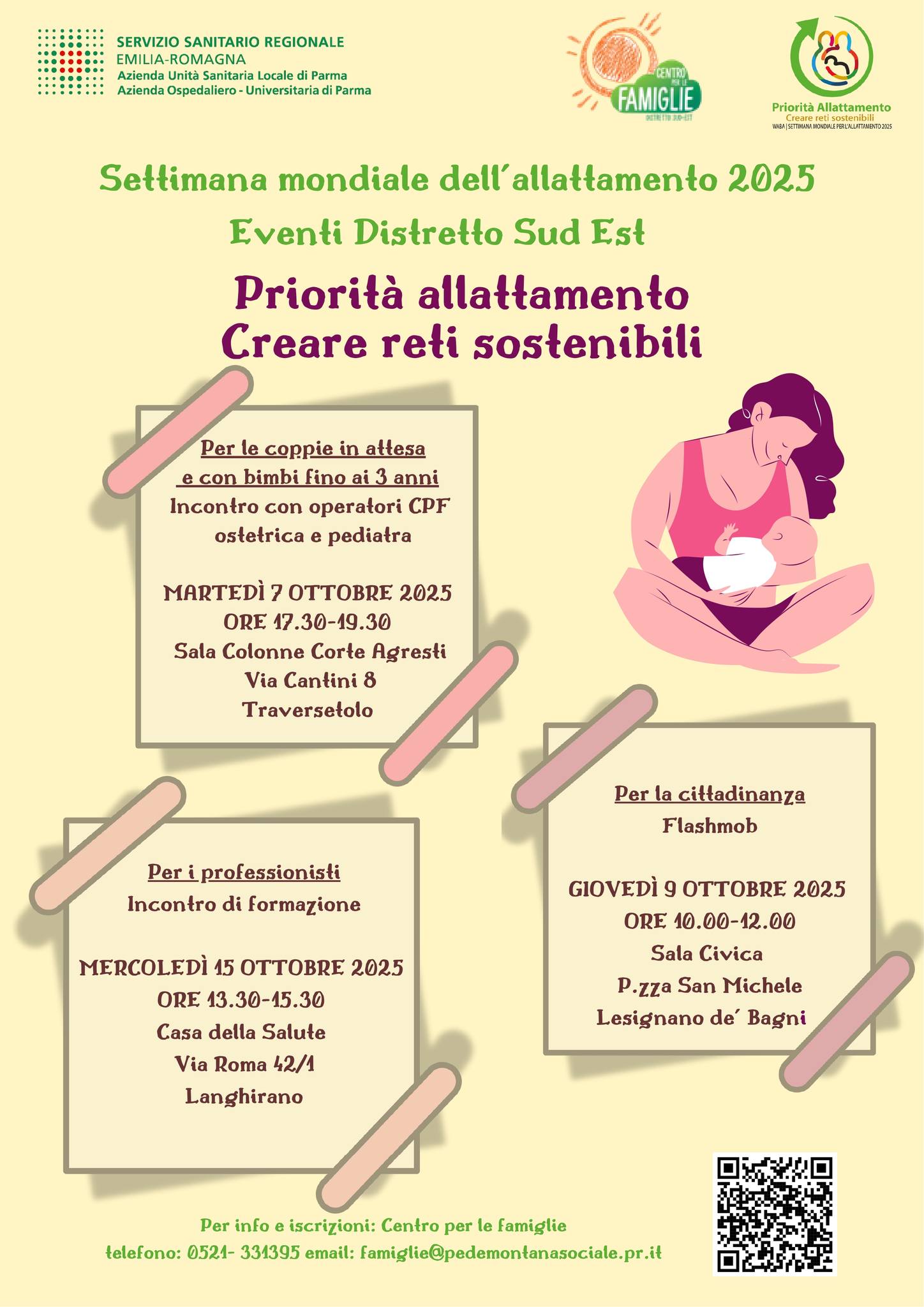 Il 15 ottobre, dalle 13.30 alle 15.30 alla Casa della Salute di Langhirano (Via Roma, 42/1), si svolgerà, invece, un incontro di formazione per professionisti che si pone l’obiettivo di rafforzare le loro competenze e creare reti capaci di accompagnare famiglie e bambini nei primi anni di vita.