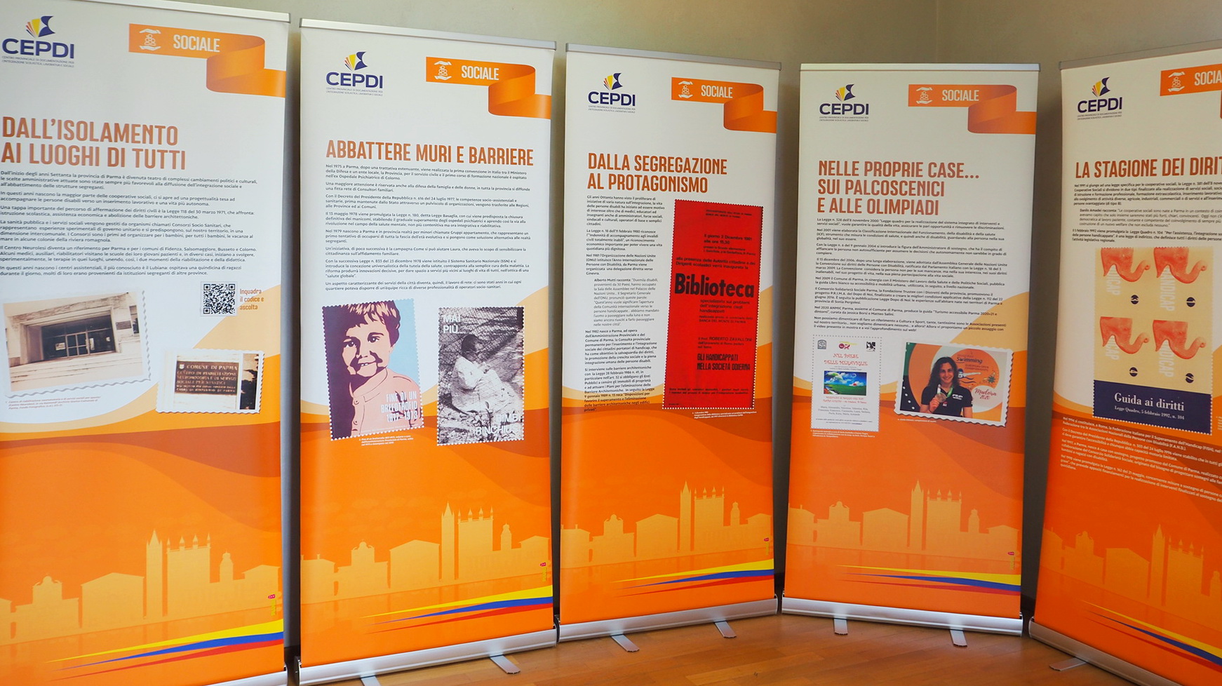 Un racconto interattivo realizzato dal Centro di Documentazione per l’Integrazione scolastica, lavorativa e sociale (CEPDI) in collaborazione con il Comune di Sala Baganza e Pedemontana Sociale attraverso testimonianze, fotografie e filmati che illustrano l’opera paziente e incessante degli enti e delle associazioni del territorio per arrivare a creare un mondo veramente inclusivo. La mostra documenta il lungo percorso per l’integrazione scolastica, lavorativa e sociale delle persone con disabilità a partire dagli anni Sessanta fino alle proposte per il prossimo futuro. Un percorso che nel Parmense è stato particolarmente virtuoso, caratterizzato da una stagione di mutamenti e di crescita politica e sociale che ha portato alla chiusura degli istituti e delle realtà segreganti in genere, per aprirsi all’accoglienza e all’integrazione delle persone con disabilità.