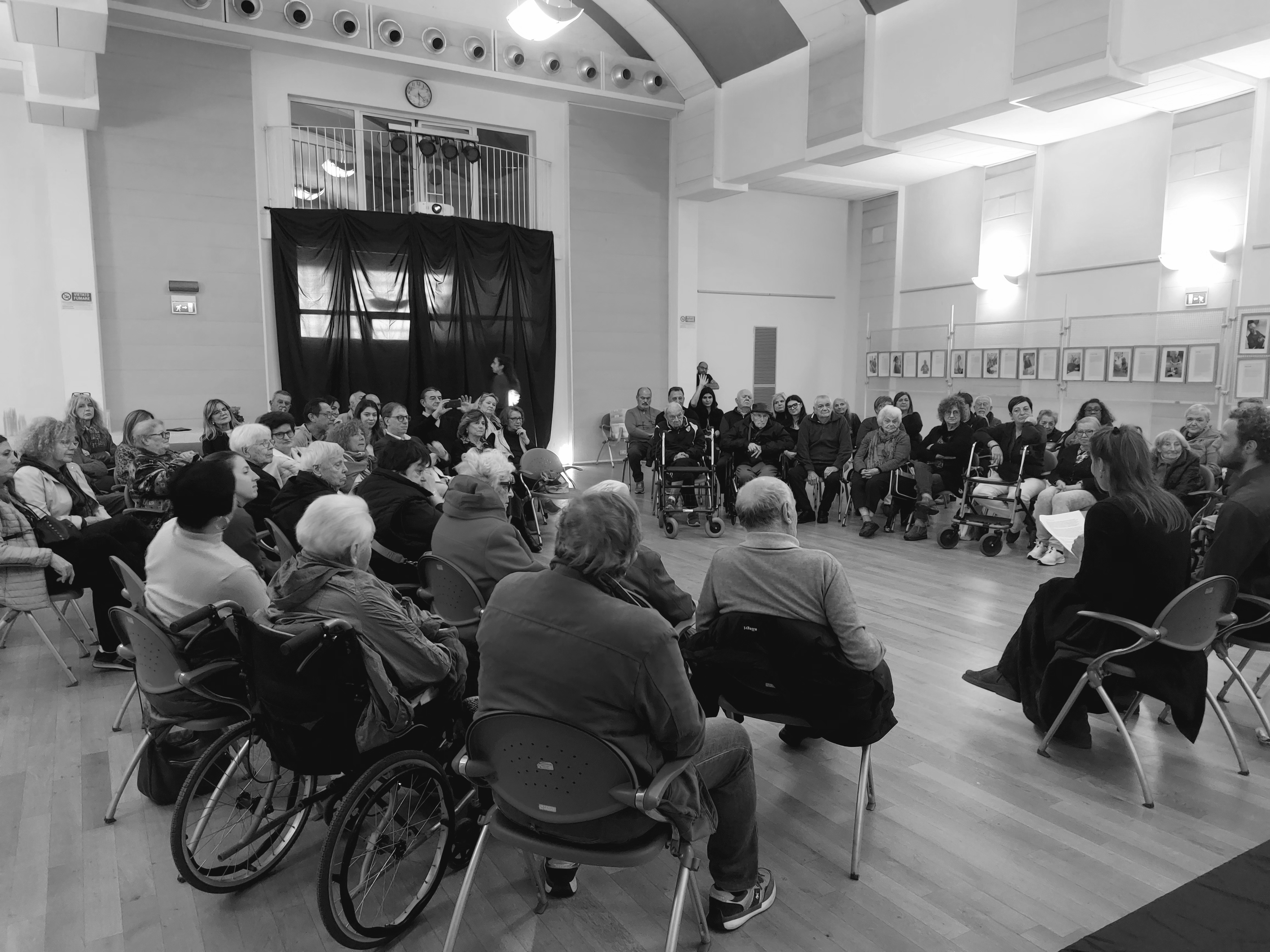 «Ogni volta che presentiamo questa mostra e il libro da cui è tratta, insieme alle persone anziane che hanno preso parte alla sua stesura, si crea un legame bellissimo tra le persone che partecipano, grazie anche ai bravissimi attori di Anellodebole – ha affermato Galli –. Venendo qui ho pensato a quando ero bambina e ai racconti di mio nonno, che ogni sera ci parlava della guerra e del lavoro. Noi non ci siamo mai stancati di ascoltarlo e credo che ascoltare gli altri, i loro pensieri e le loro parole ci faccia crescere. “Ogni anziano è una biblioteca” e questo progetto, di cui siamo fieri, è stata un’idea meravigliosa».
